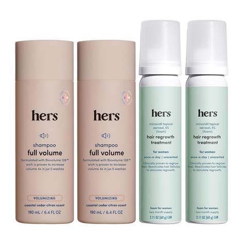 Hers Minoxidil Shampoo harnesses the power of minoxidil, an FDA-approved ingredient clinically proven to promote hair growth. This breakthrough formula nourishes hair follicles, stimulating blood flow and encouraging the growth of healthier, stronger hair strands.